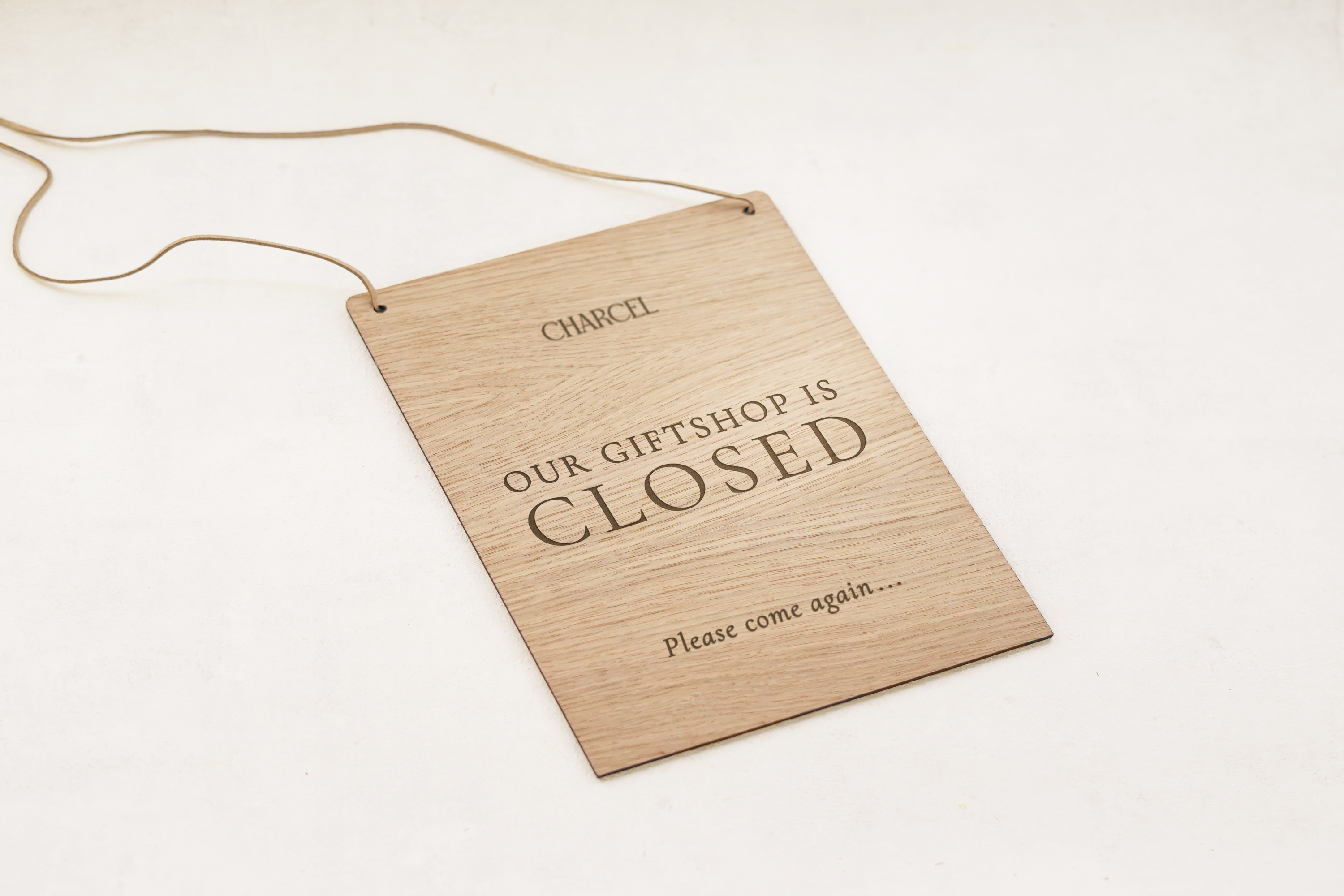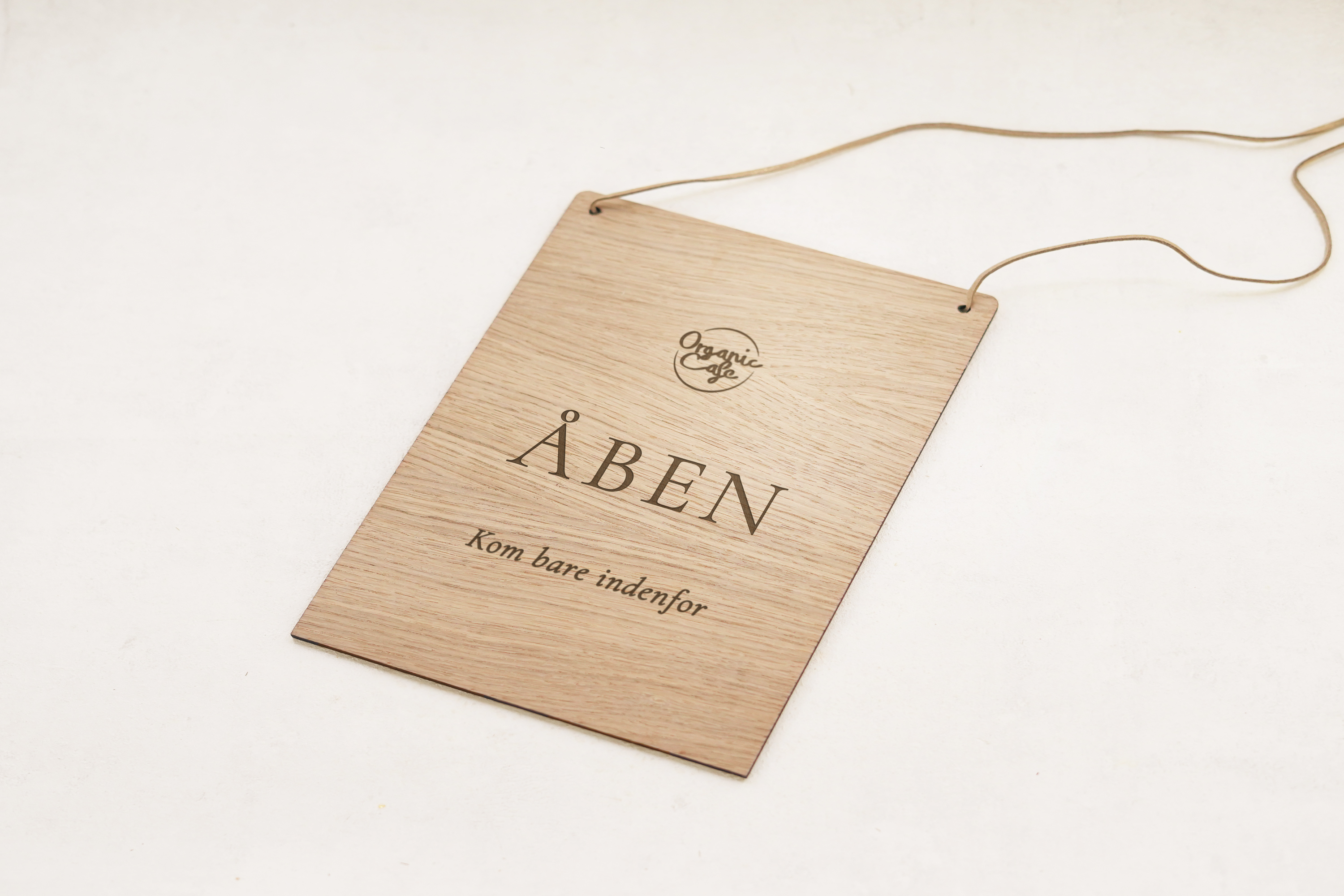 Åben / Lukket skilt i træ, perfekt til butik, giftshop eller lignende. Skiltet graveres med egen tekst og logo, så det bliver både personligt og professionelt. En stilfuld og holdbar løsning, der gør det let for kunderne at se, om der er åbent eller lukket.