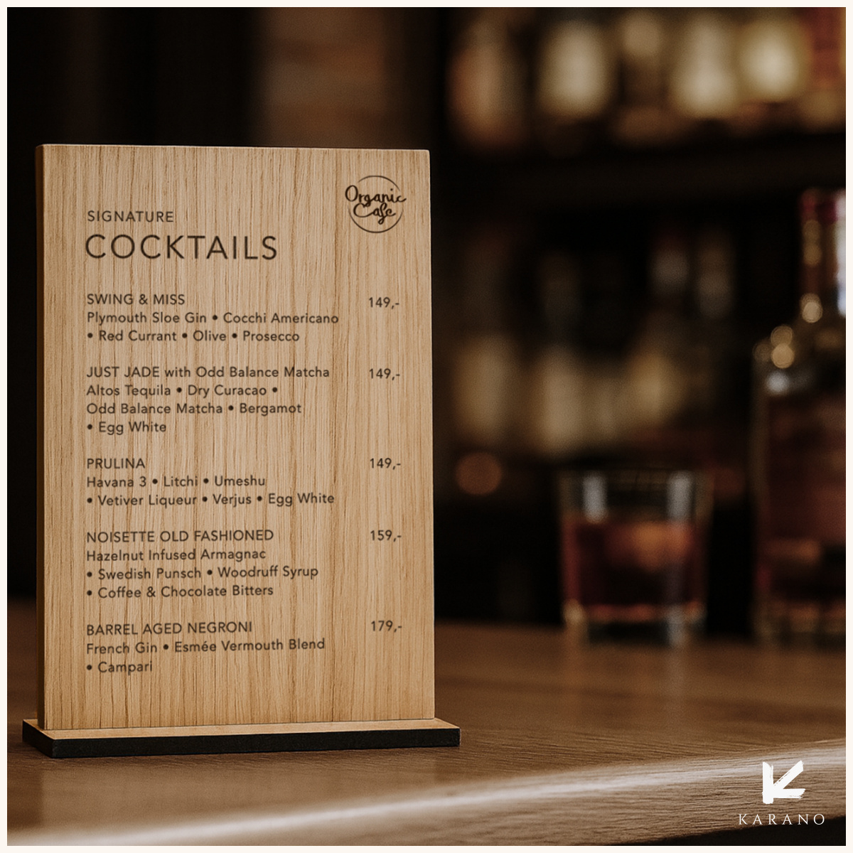 Elegant skilt i træ med graveret tekst – perfekt til baren eller loungeområdet. Skabt i høj kvalitet med et naturligt udtryk, der giver et eksklusivt og stemningsfuldt look.