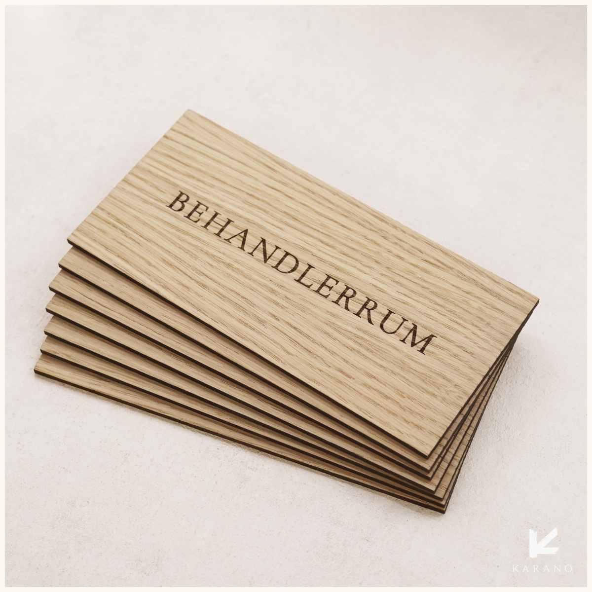 Dørskilte til virksomheder i træ med valgfri tekst, f.eks. “Private” eller “Staff Room”, giver et stilrent og professionelt udtryk. En holdbar og elegant løsning, der passer perfekt til kontorer, butikker, klinikker og hoteller.