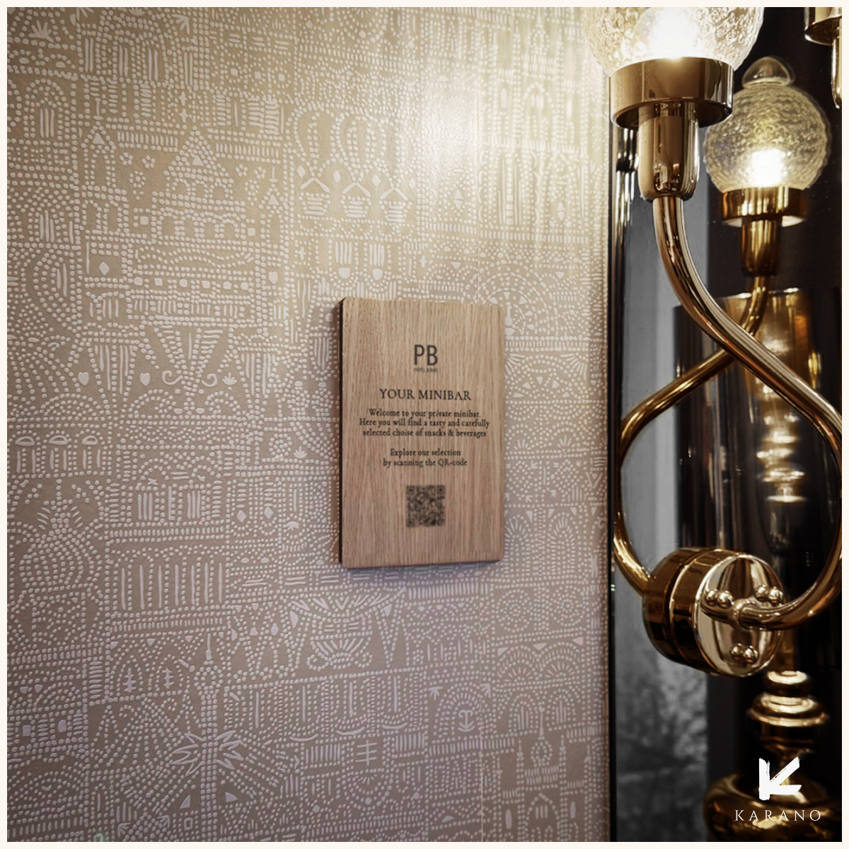 Hængende QR-skilte i træ, ideelle til hotelværelser, caféer eller receptioner. Skiltene kombinerer funktion og æstetik med mulighed for scanning af fx menukort, wi-fi eller information, og tilføjer et stilrent og naturligt præg til indretningen.