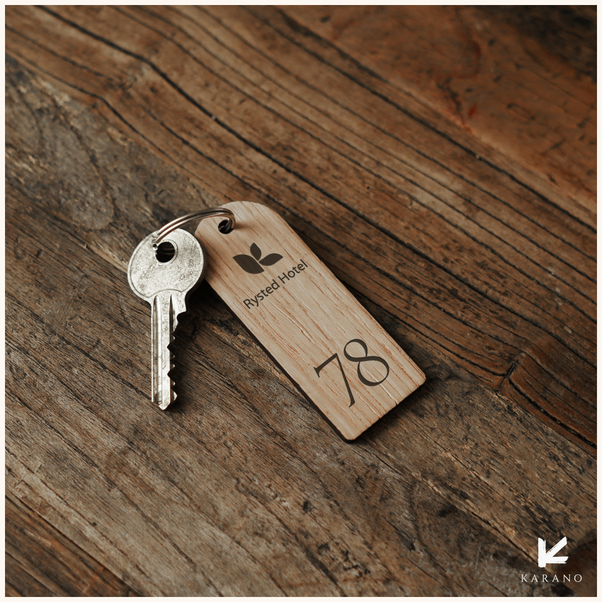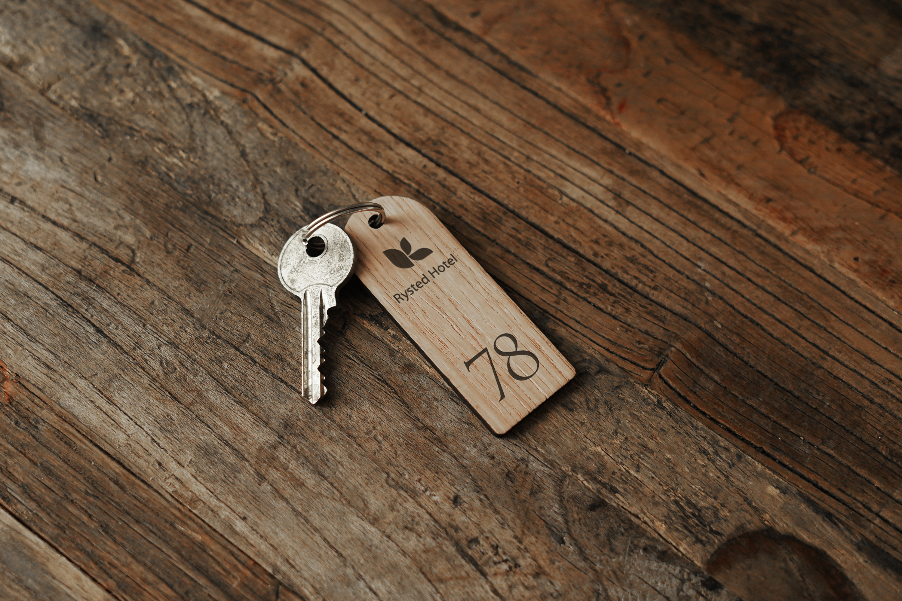 Elegant og holdbart nøgleringsvedhæng i træ, skabt til hoteller. Graveret med værelsesnummer eller logo for et personligt og eksklusivt udtryk.