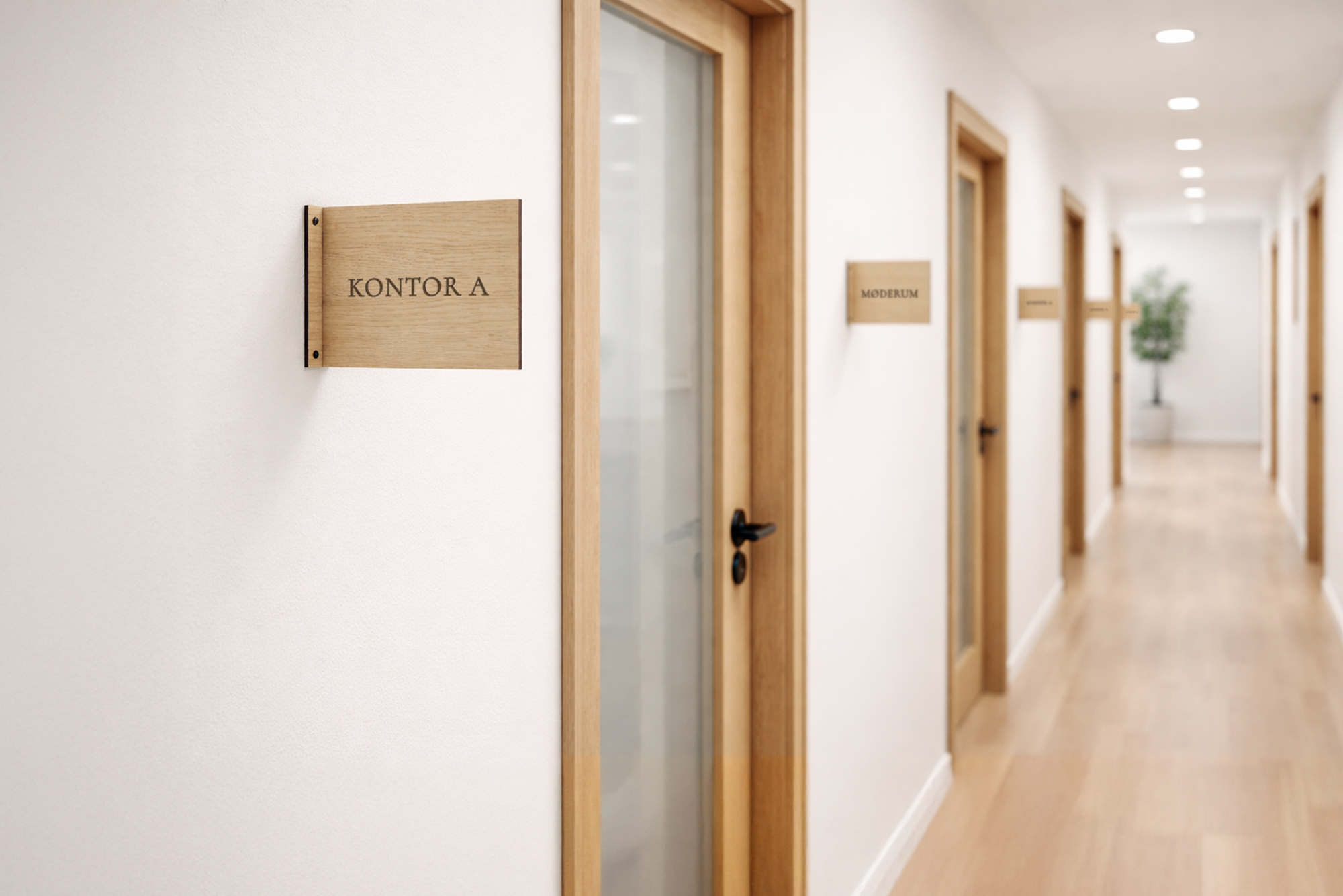 Infoskilte til væg i træ til virksomheder giver et varmt og professionelt udtryk. Det naturlige træ skaber en rolig og eksklusiv atmosfære, samtidig med at information formidles tydeligt og stilrent.
