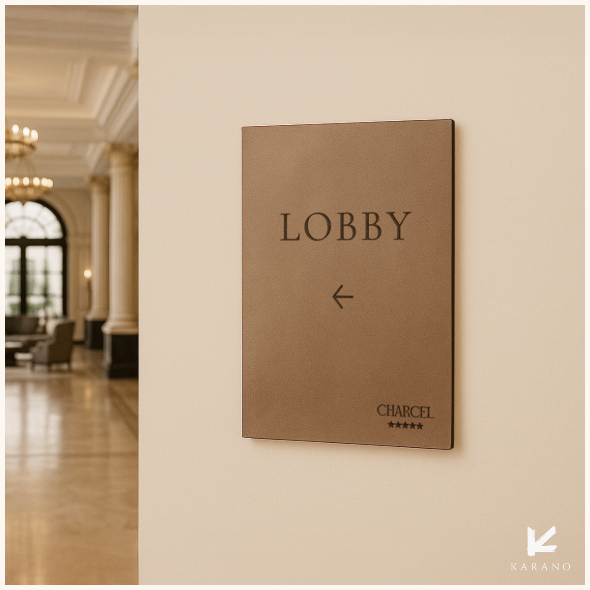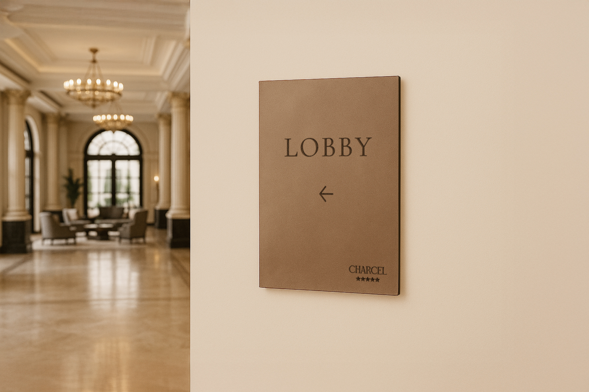Infoskilt i træ til væg, designet til hoteller, der ønsker en elegant og varm måde at guide og informere gæsterne. Skiltet fremstilles i træ med informationer der fremstår tydelige og professionelt.