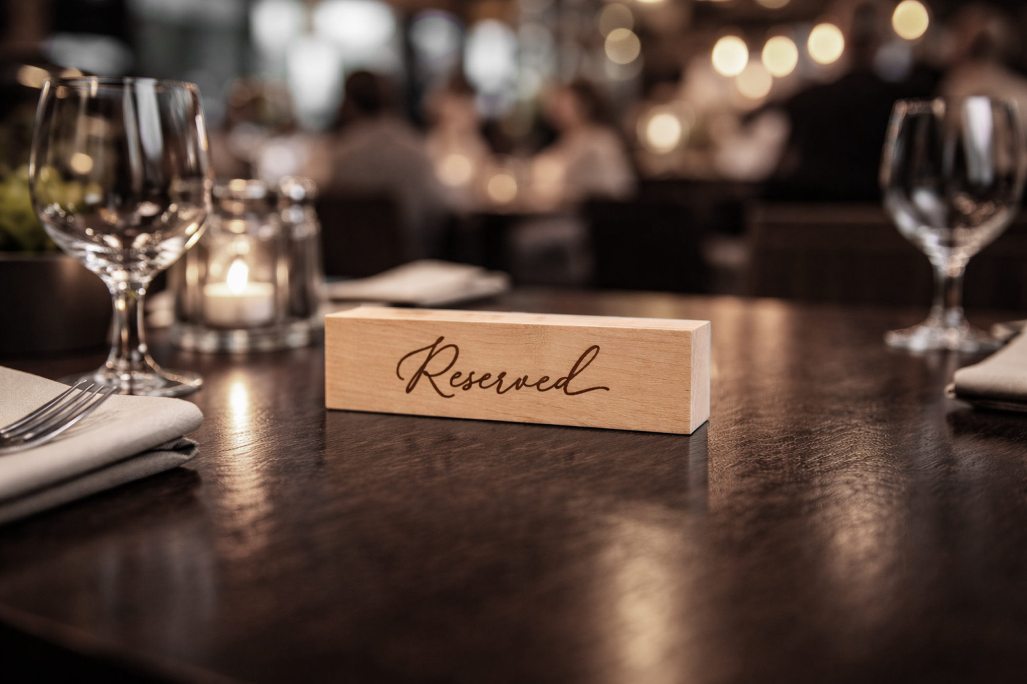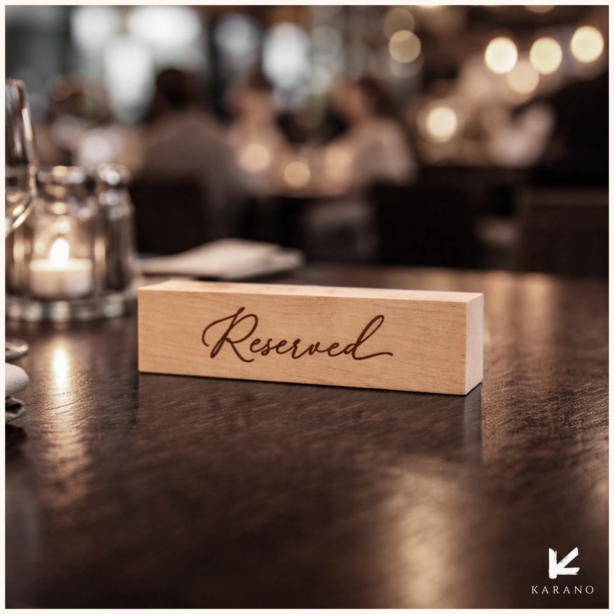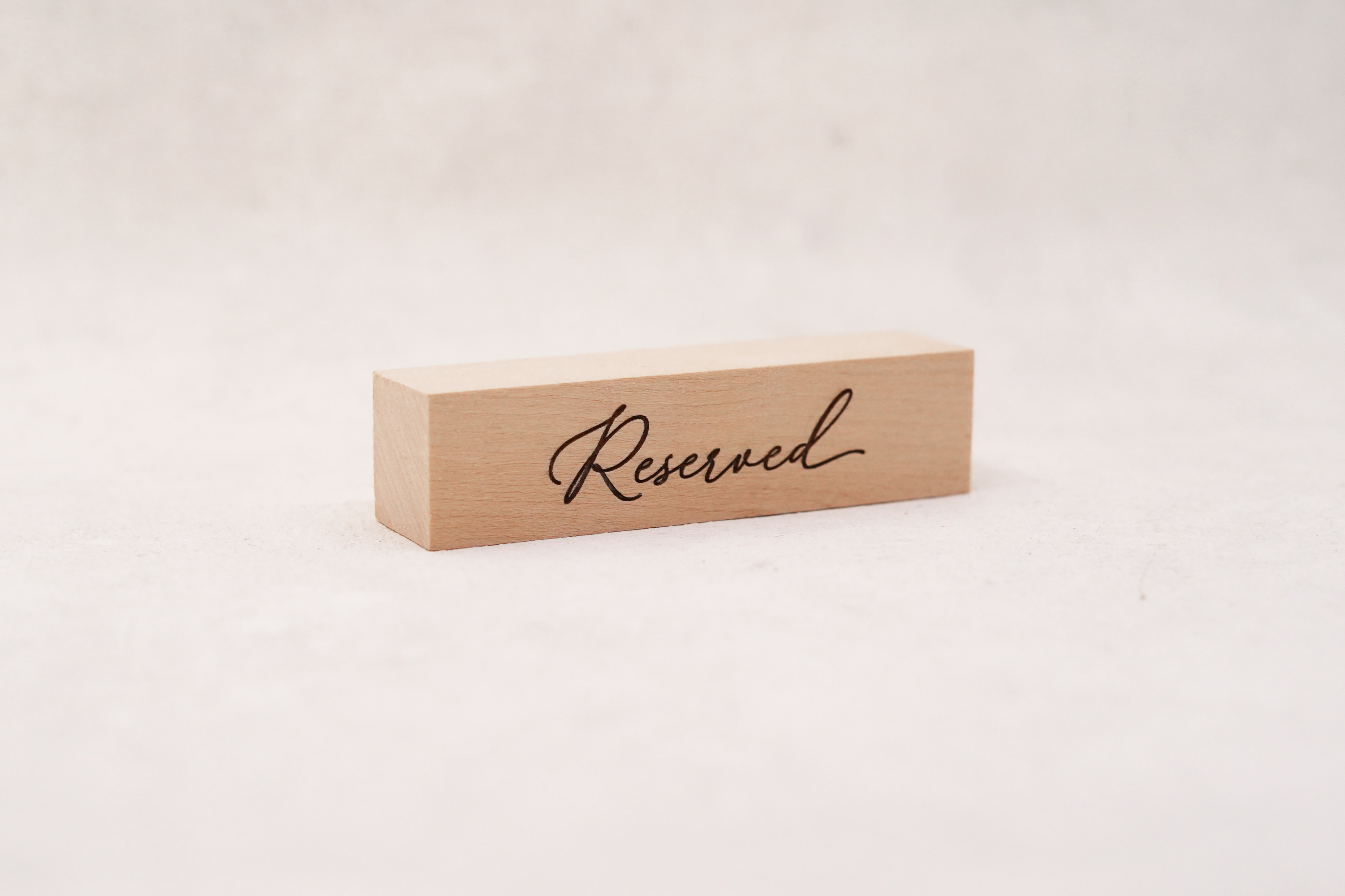 Massive reservationskilte i træ med håndskrift giver et personligt og eksklusivt udtryk. Den håndskrevne stil kombineret med det solide træ skaber en varm og indbydende stemning med et unikt præg.