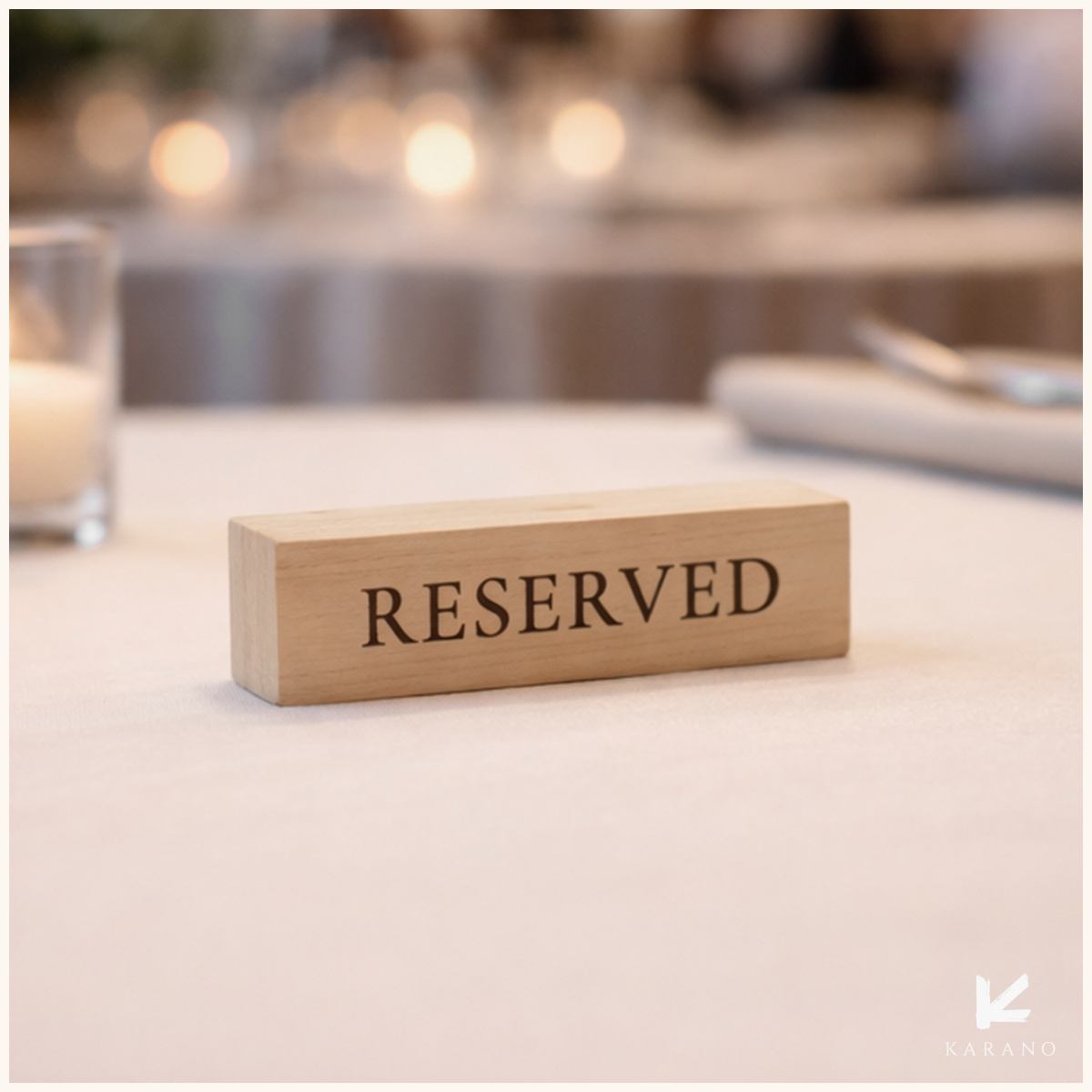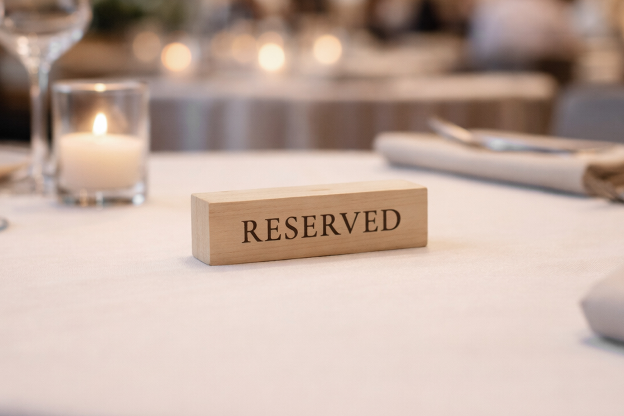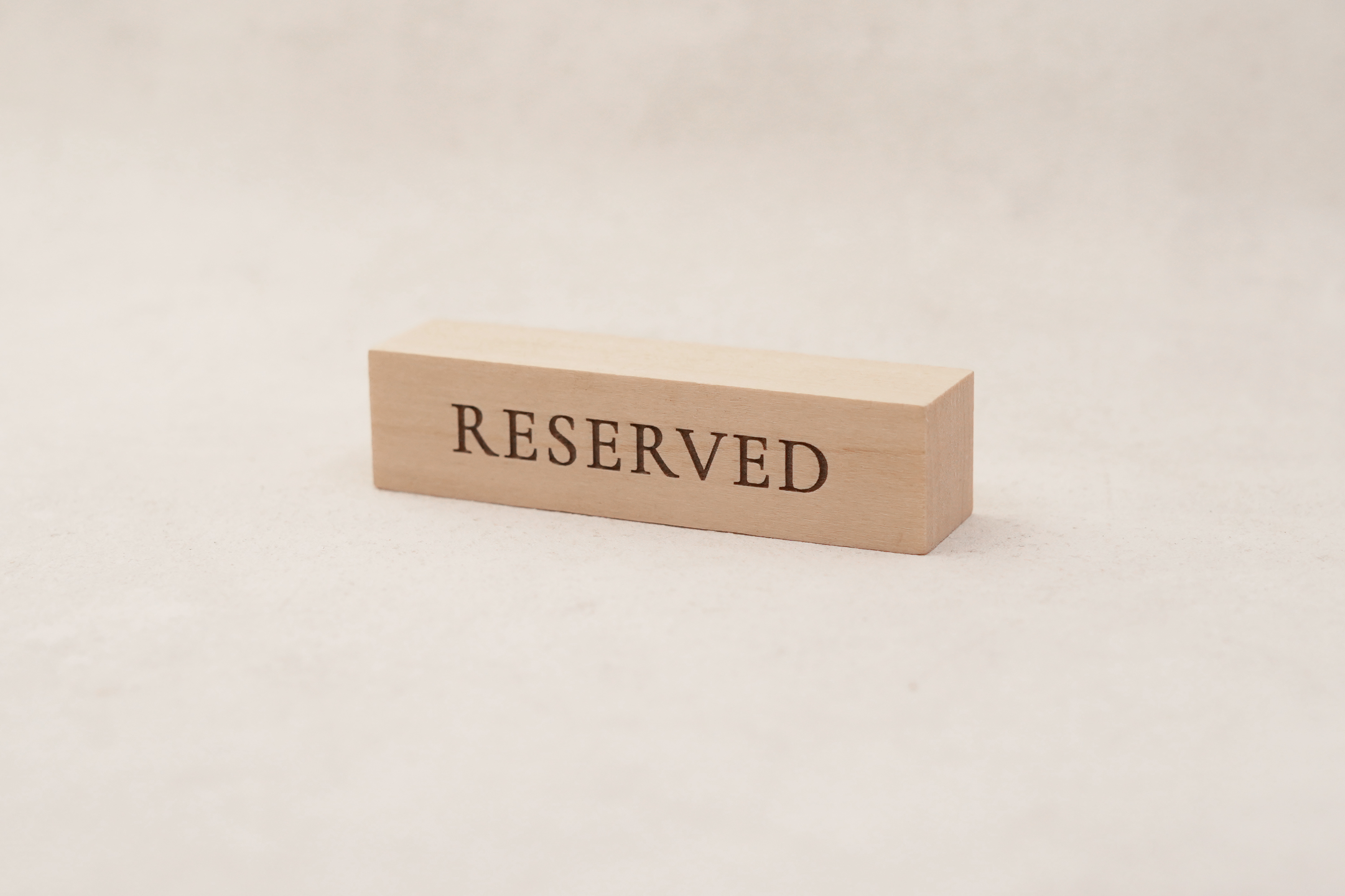 Massive reservationskilte i træ til restaurant giver et eksklusivt og robust udtryk. Det solide træ og den naturlige struktur skaber en varm og indbydende stemning, samtidig med at reservationer markeres tydeligt og stilrent.