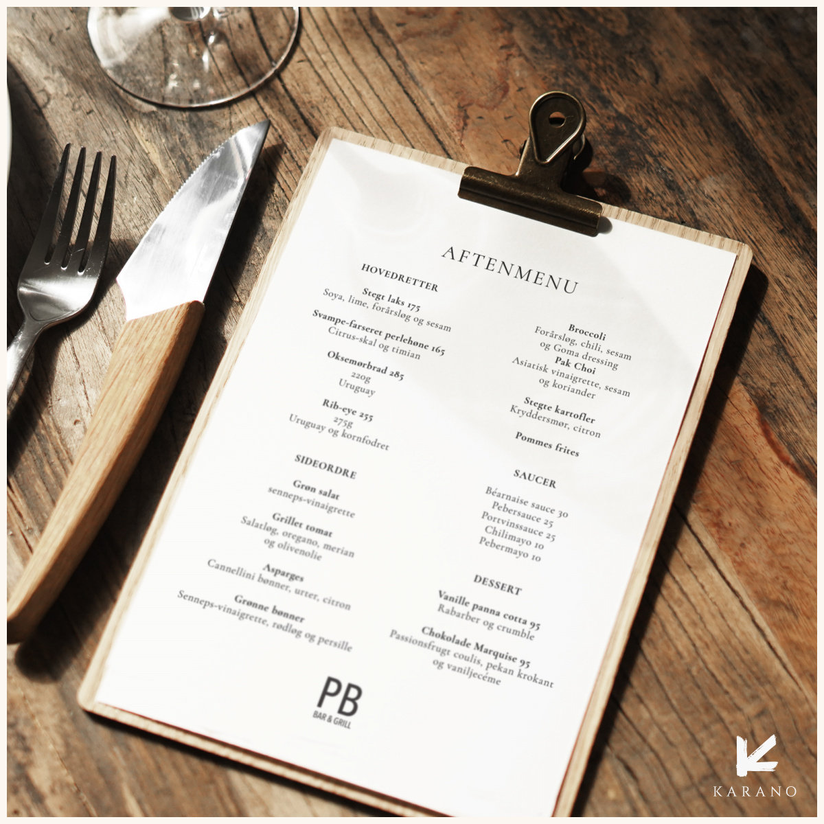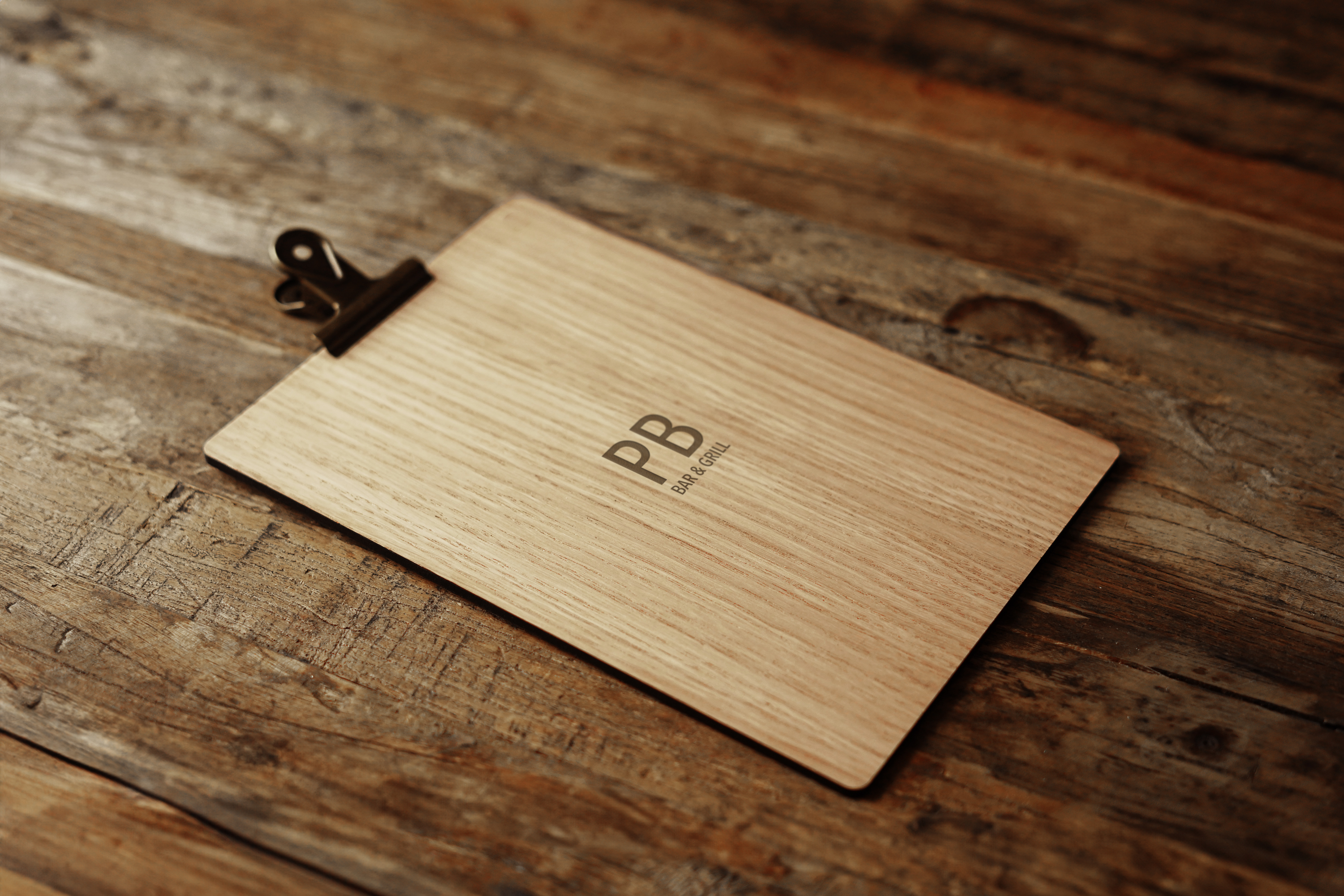 Elegant og funktionel menuholder i træ til A5 menu, perfekt til restauranter, caféer, hoteller og andre steder, hvor der skal præsenteres menuer på en stilfuld måde. Den rustikke metalklemme gør det nemt og hurtigt at udskifte indholdet, så det altid passer til dagens menu. Logogravering på bagside kan tilføjes.