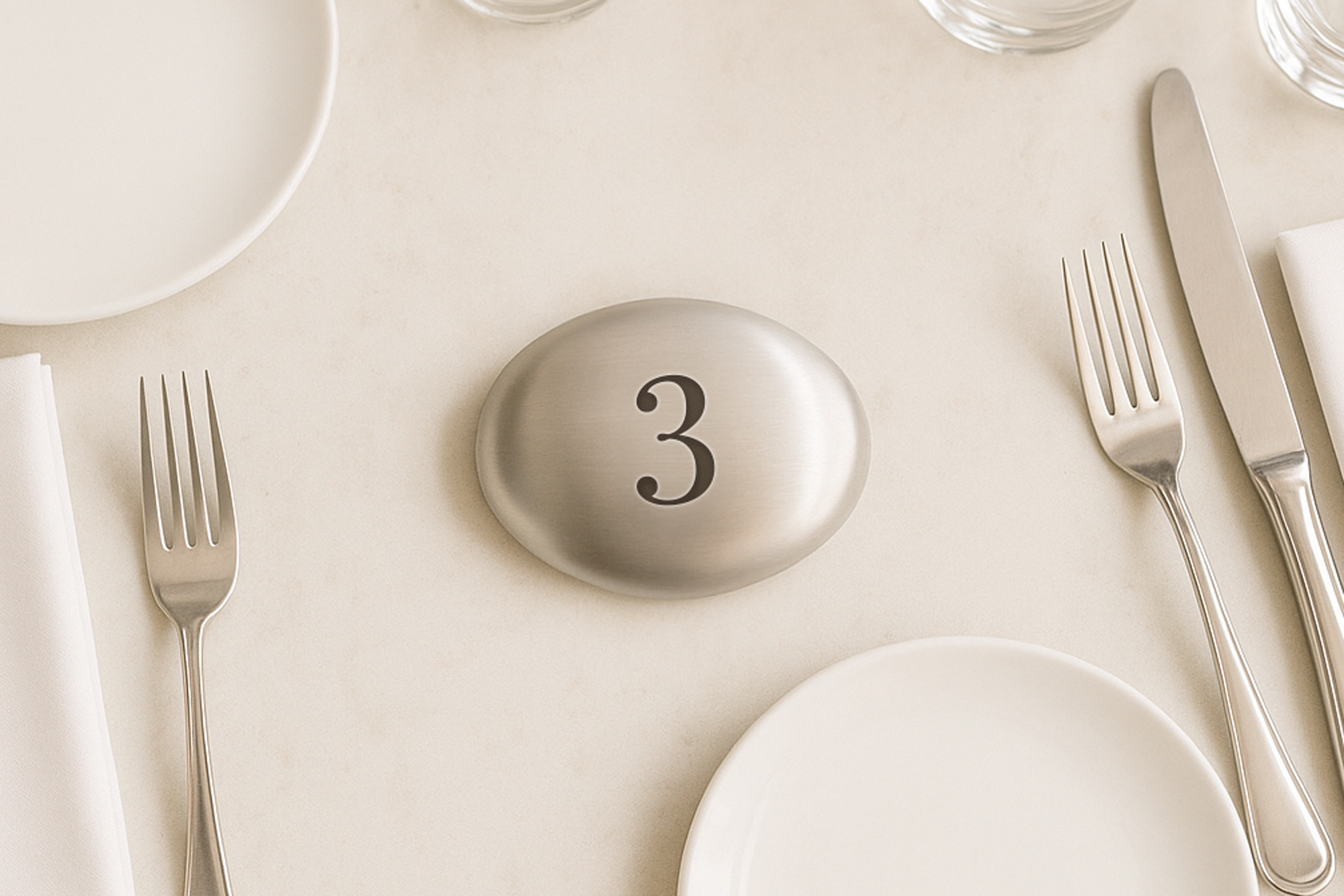Elegante og holdbare numre, der passer perfekt til restauranter og hoteller. Det børstede stål giver et stilrent og professionelt udtryk, mens de præcise tal sikrer tydelig identifikation for både gæster og personale.
