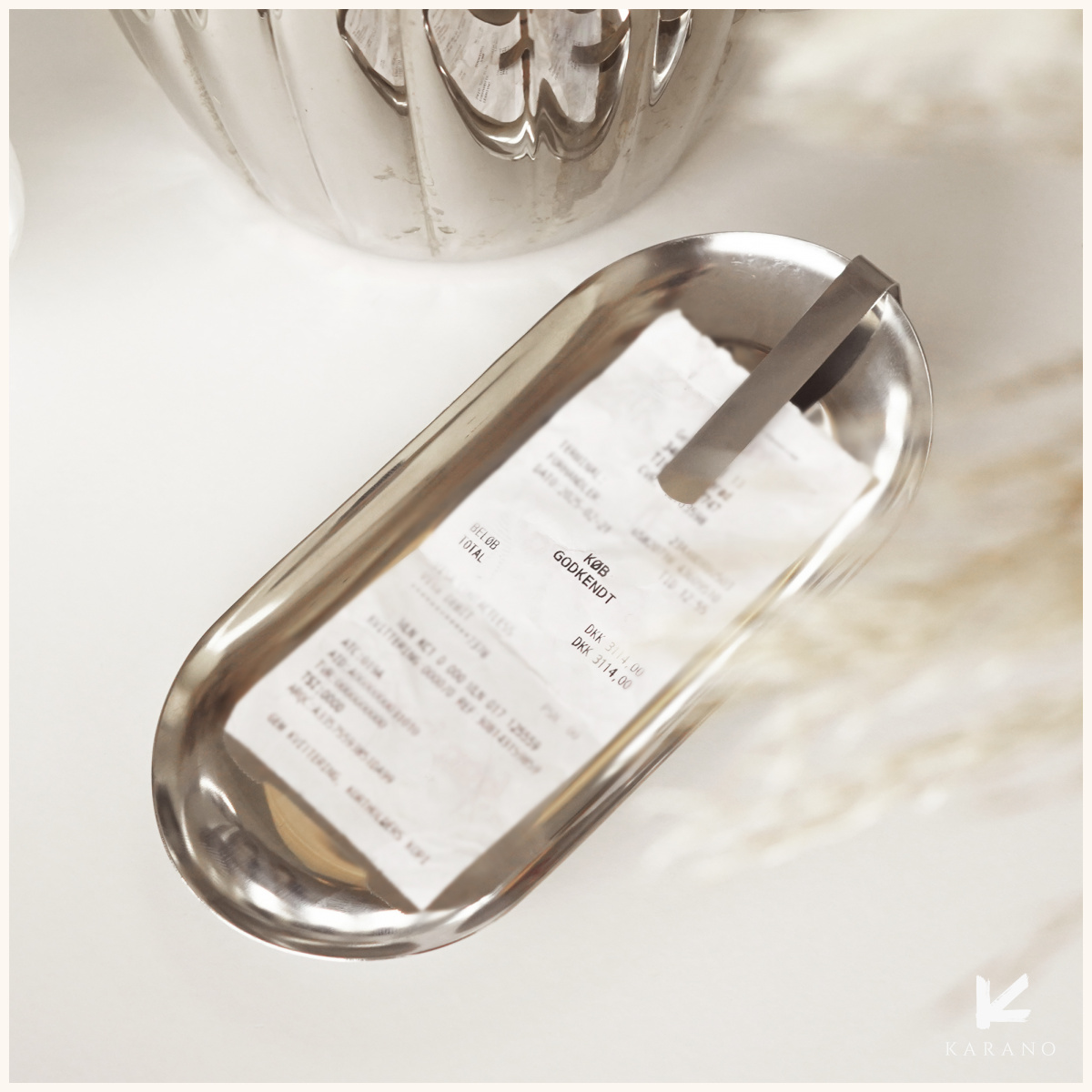 Elegant regningsholder i rustfri stål med praktisk klips – ideel til restauranter, caféer og barer. Det enkle design giver et stilrent og professionelt udtryk ved bordservering eller på disken. Perfekt til præsentation af regninger, kvitteringer eller små sedler.