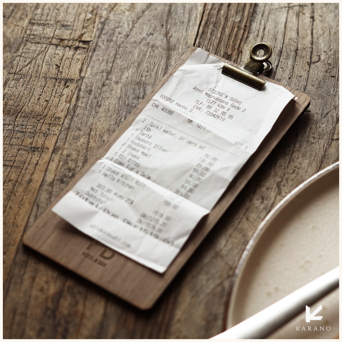 Regningsholder i træ, designet til restauranter, caféer og hoteller. Udstyret med en rustik metalklemme, der nemt kan åbnes og lukkes – perfekt til præsentation af regninger, kvitteringer eller små notater med et stilfuldt og professionelt udtryk. Logogravering kan tilføjes.