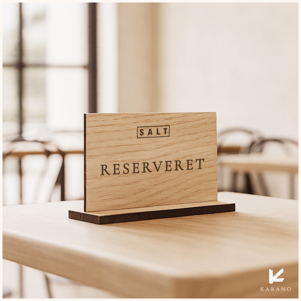 Enkle infoskilte med diskrete fødder, der gør dem nemme at placere på borde. Hvert skilt kan fremstilles med logo og bagsidegravering, hvis det ønskes.