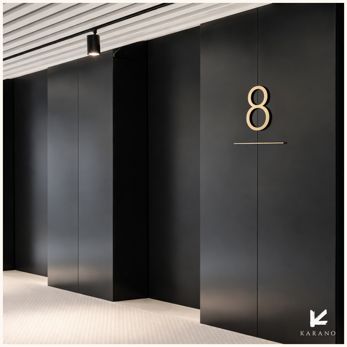 Udskåret etagenummer til hotel, designet til et stilrent og professionelt udtryk. Perfekt til tydelig markering af etager og som en elegant del af hotellets samlede skiltning.