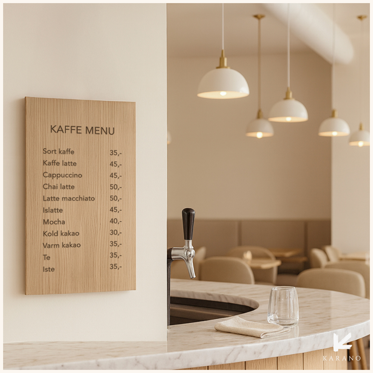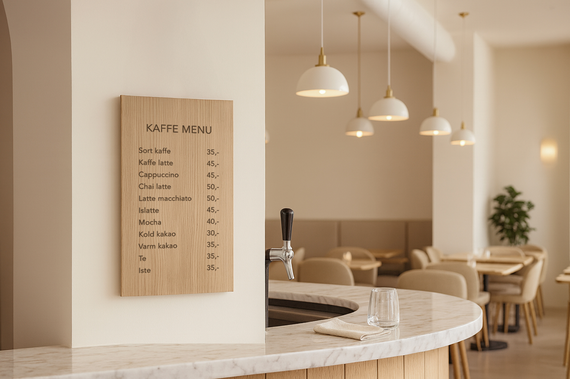 Stort barskilt i træ til restaurant, café og hotelbar – et markant og elegant skilt, der giver et varmt, eksklusivt udtryk. Skiltet laves i træ med præcis gravering.