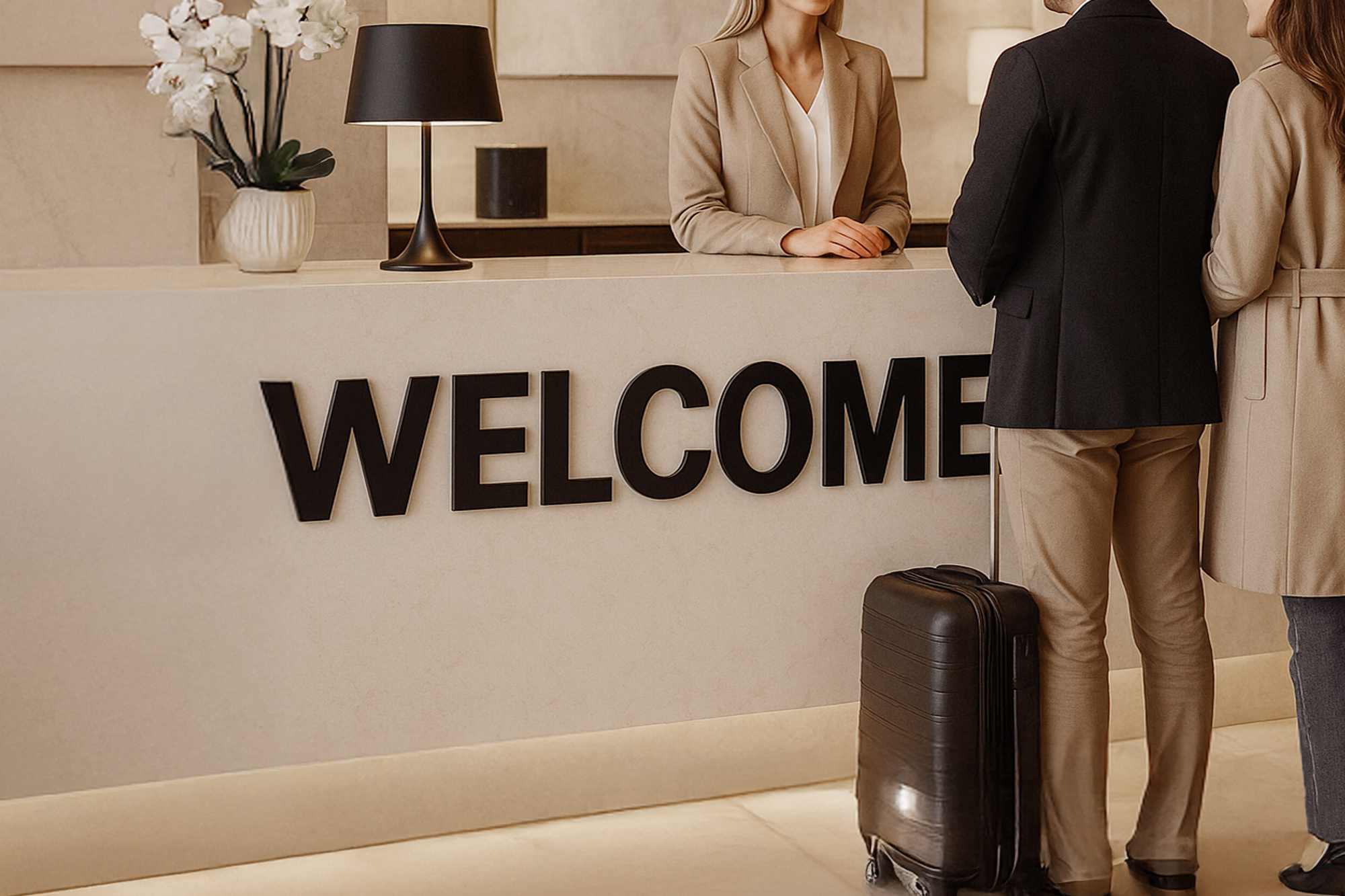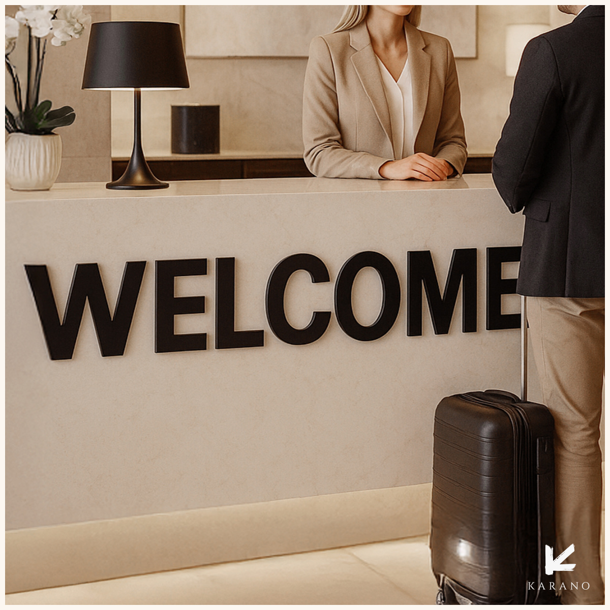 Receptionskilt med præcist skårne bogstaver, som skaber en tydelig og elegant markering af receptionen og passer perfekt ind i både moderne og klassiske hotel- og restaurationsmiljøer.