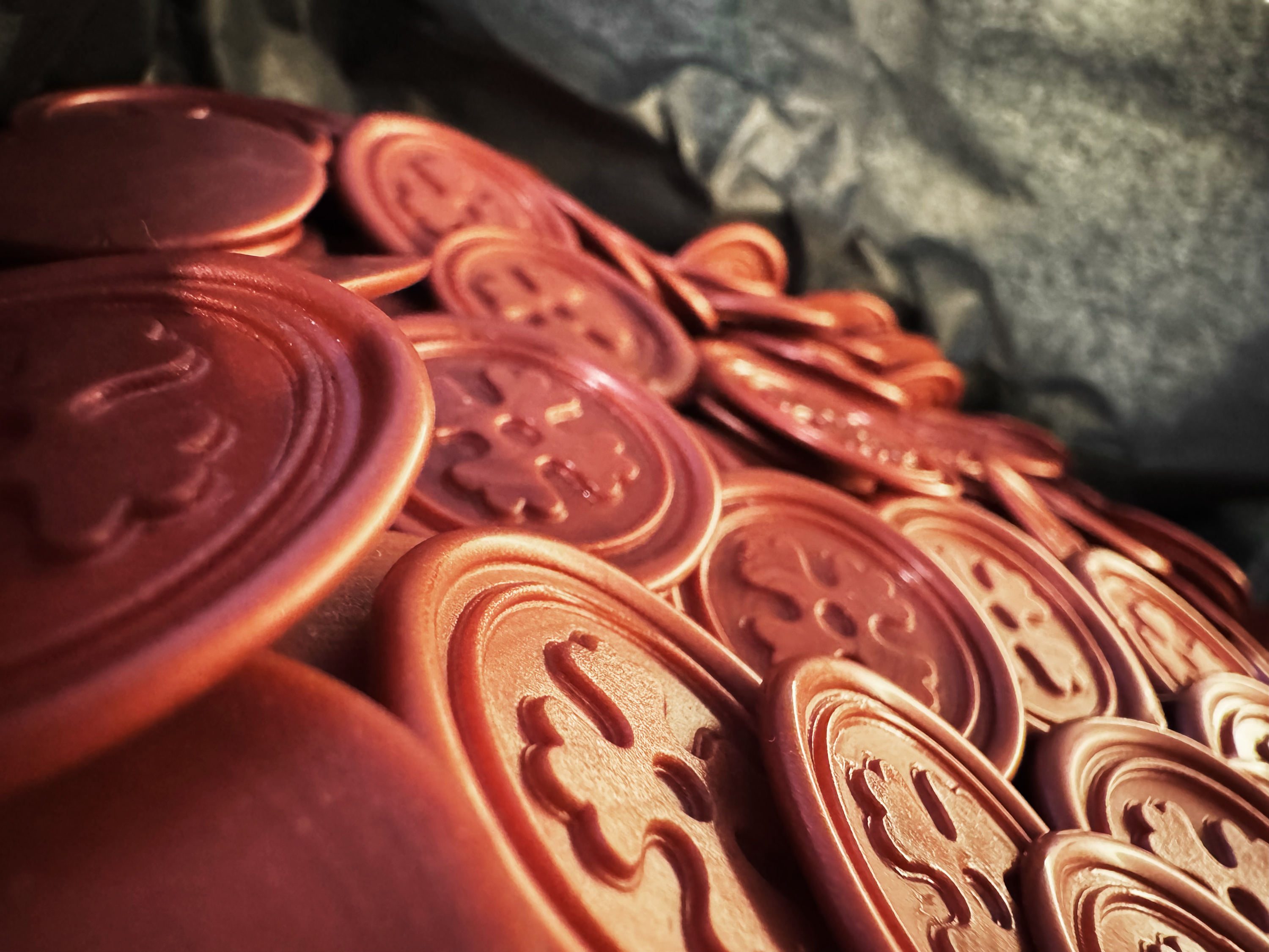 Med laksegl labels behøver du ikke selv at gøre noget. De er lavet for dig. Lakseglene er nemme at hæftes på emner, på grund af deres selvklæbende bagsider.