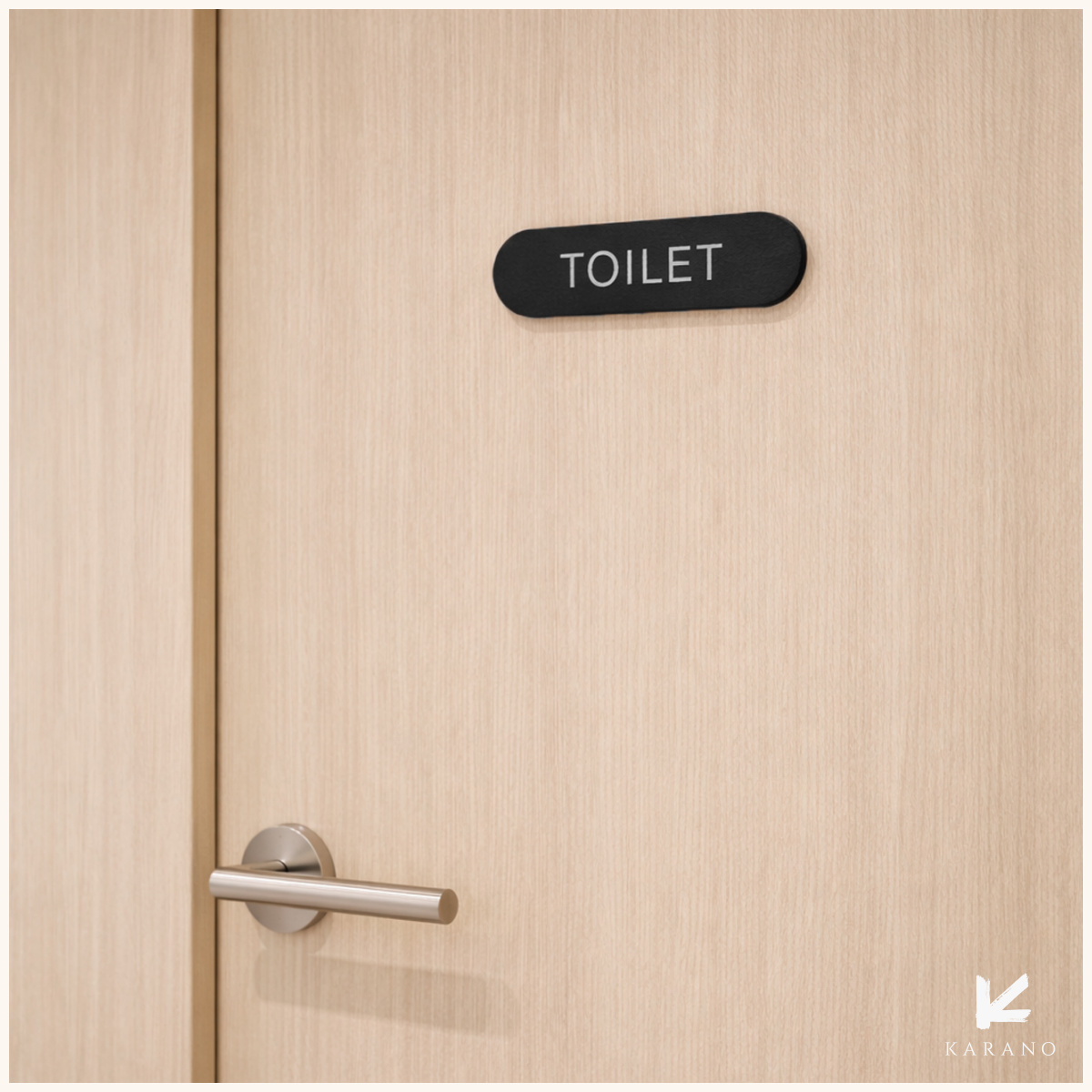 Toiletskilte i sort læder med sølvskrift, der giver et eksklusivt og stilrent udtryk til hotel, restaurant og lounge. Perfekt til moderne og klassiske indretninger.