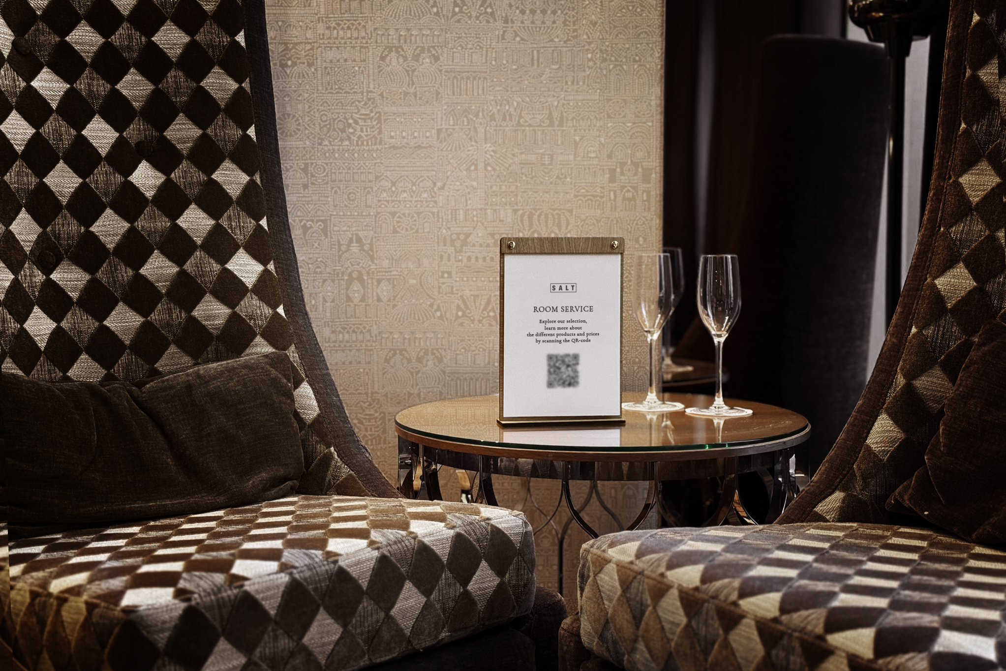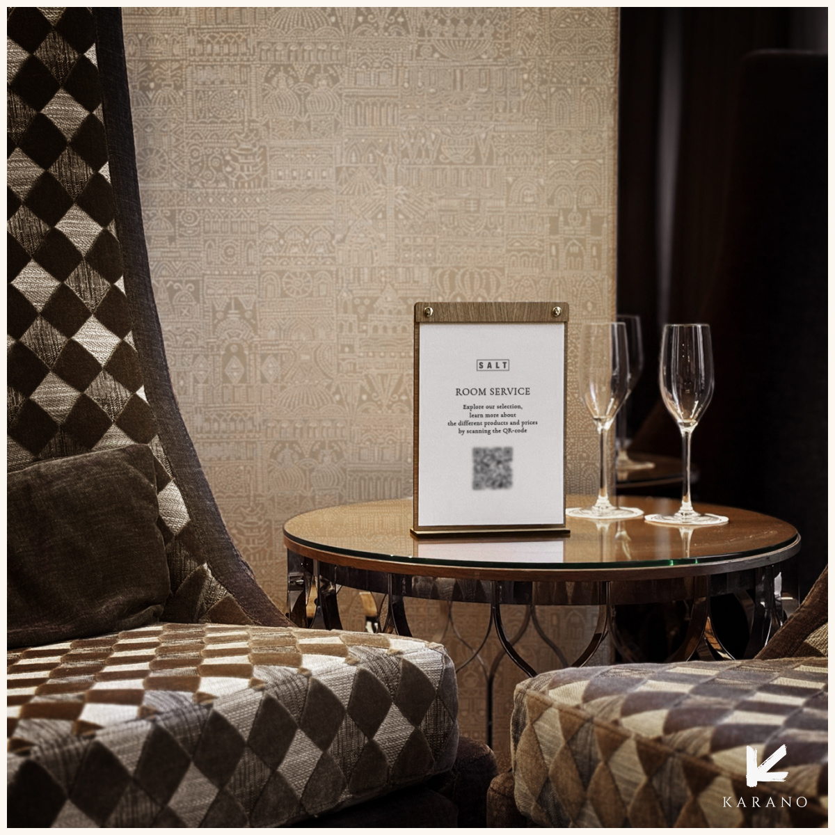 Elegant infoholder i træ med praktiske metalnitter, så ark med informationer om f.eks. room service, wi-fi, minibar eller andre gæsteinformationer, nemt kan udskiftes. Perfekt til hoteller, restauranter og caféer, hvor både funktion og æstetik er i fokus.