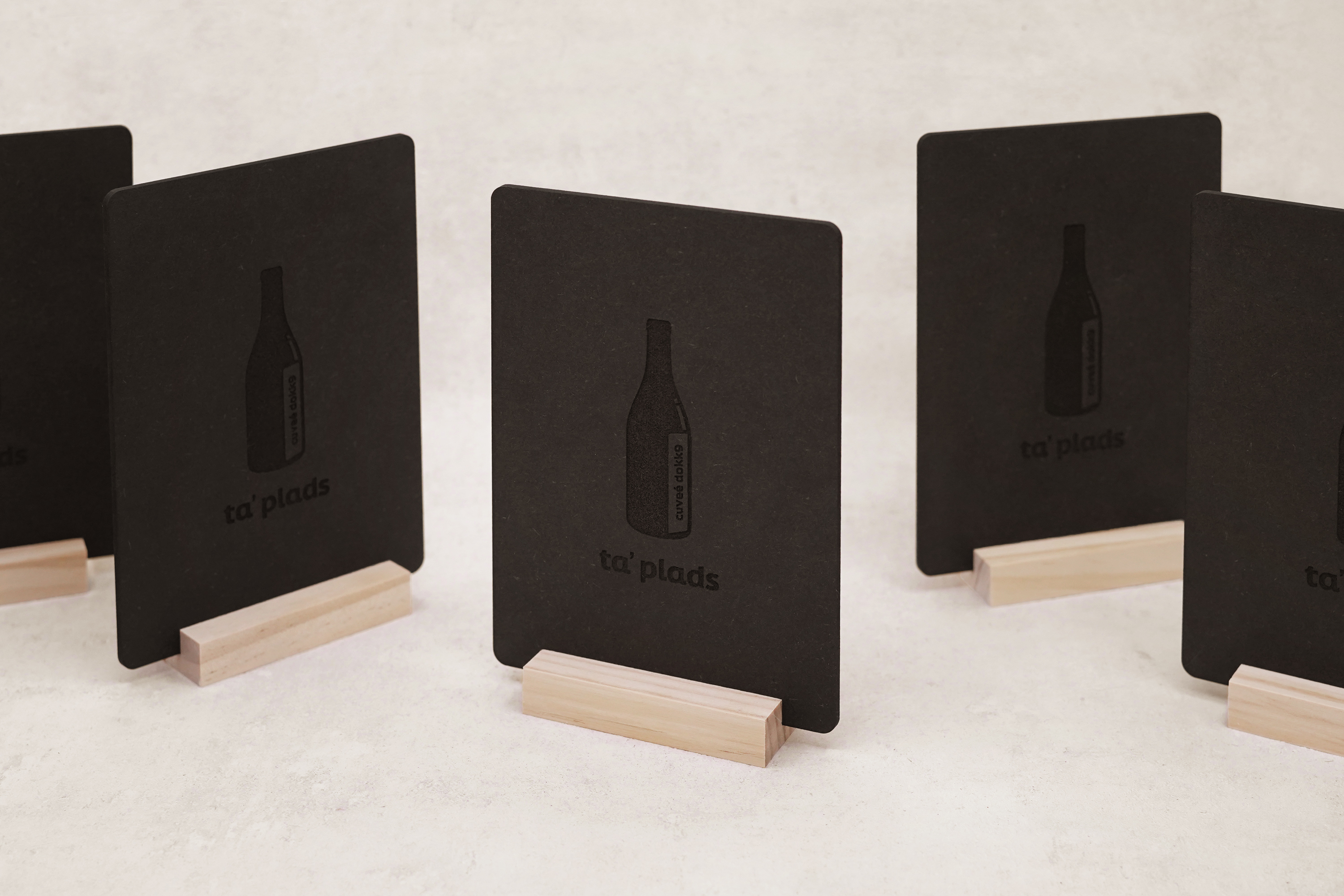 Stilrene træholdere til skilte – ideelle til restaurant, café, hotel og butik.