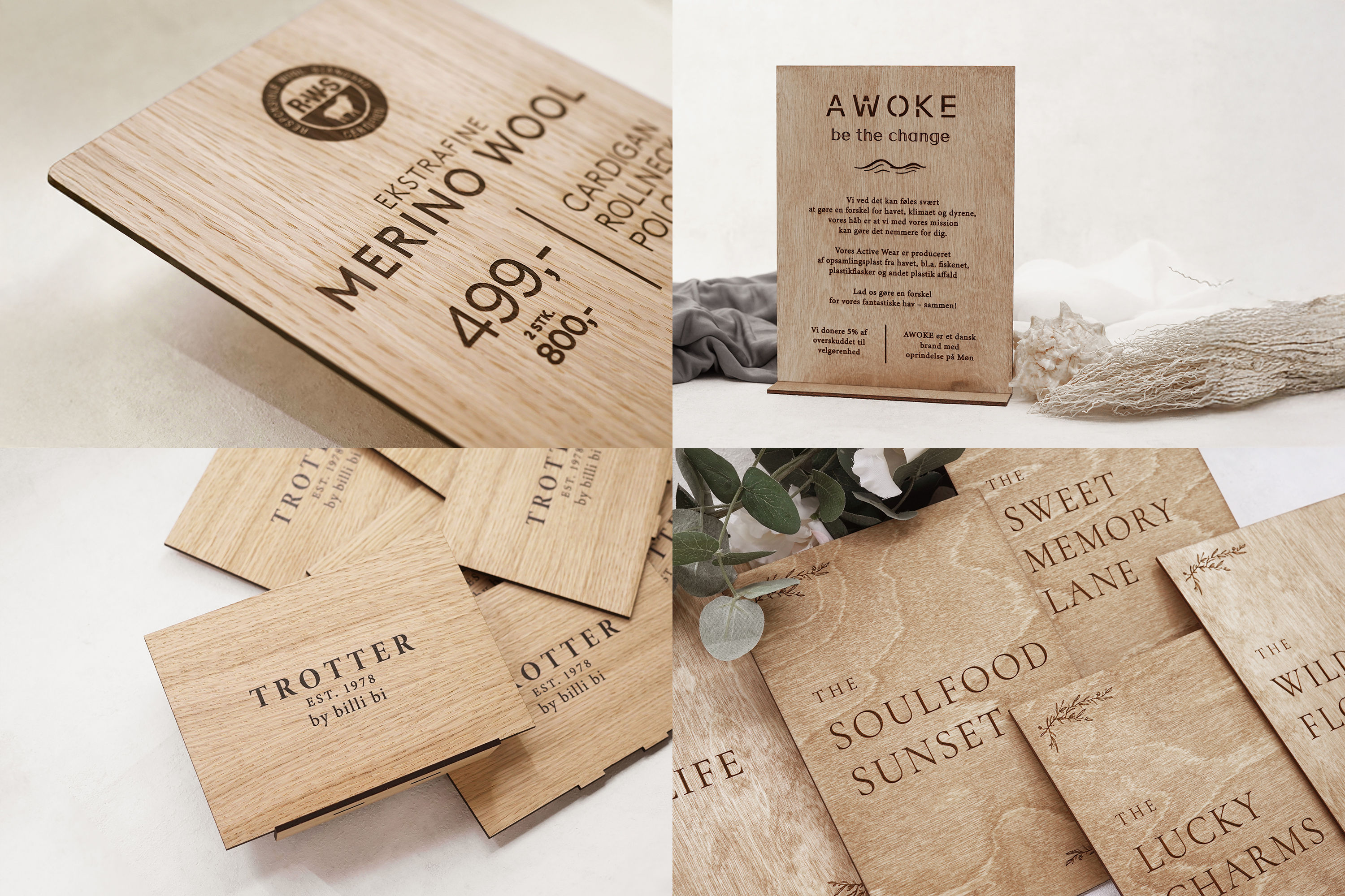 • Fremstilles af træfiner med gravering
