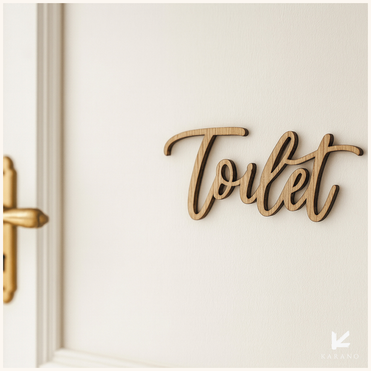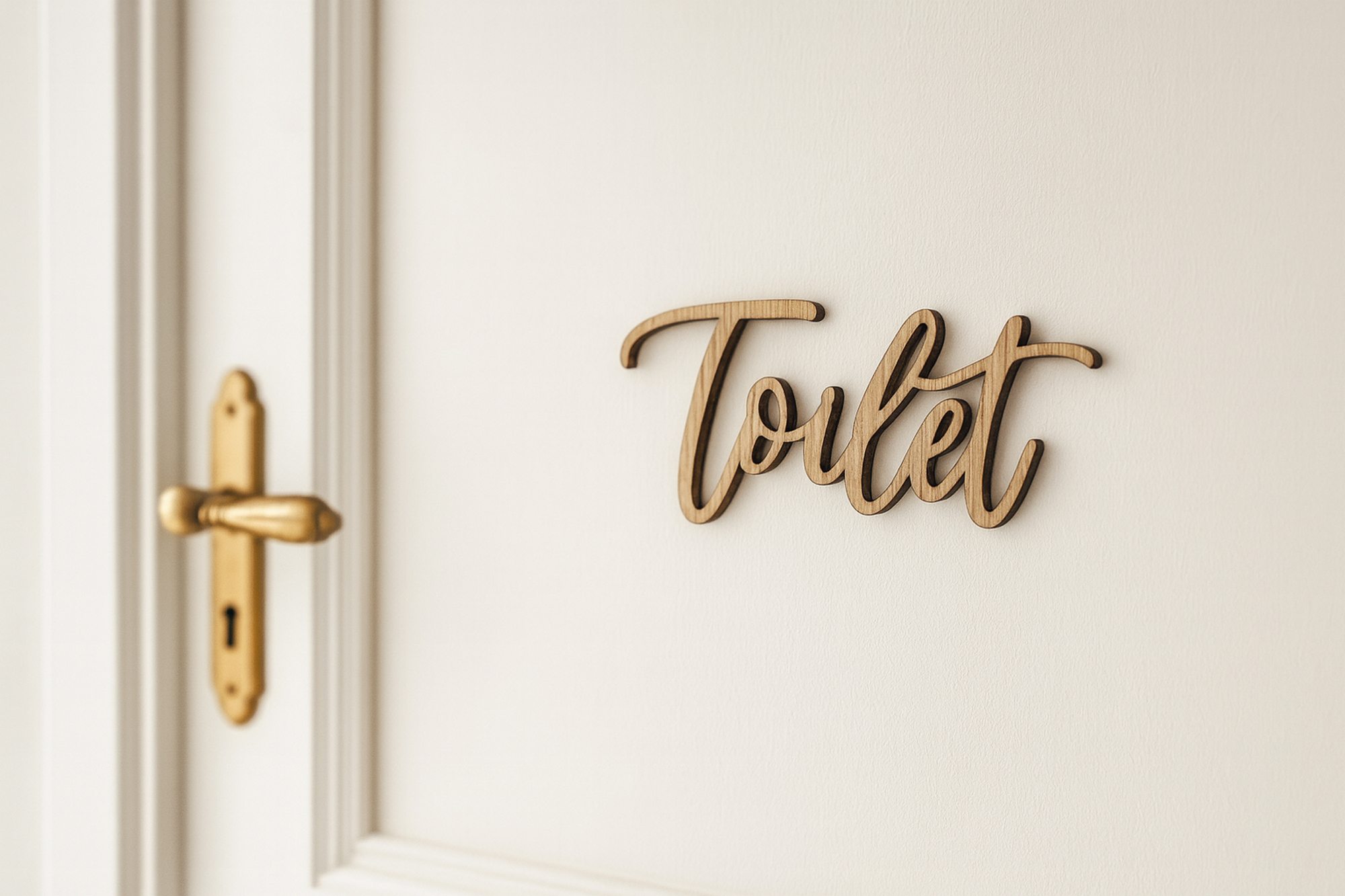 Udskåret toiletskilt i træ designet i en smuk håndskrift, som kombinerer funktionalitet med æstetik og passer perfekt til hoteller, caféer, klinikker og butikker, hvor et varmt og indbydende look ønskes. Sættes op med dobbeltklæbende tape.
