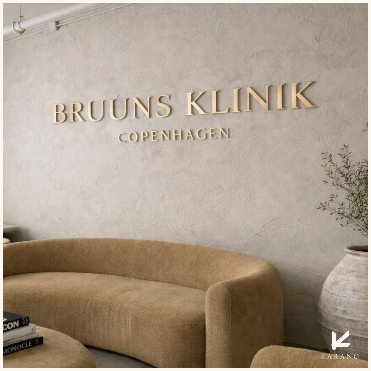 Udskårne guldbogstaver til væg, der tilfører et eksklusivt og elegant udtryk. Ideelle til hoteller, spa, restauranter og receptioner, hvor tydelig skiltning og et luksuriøst design går hånd i hånd.