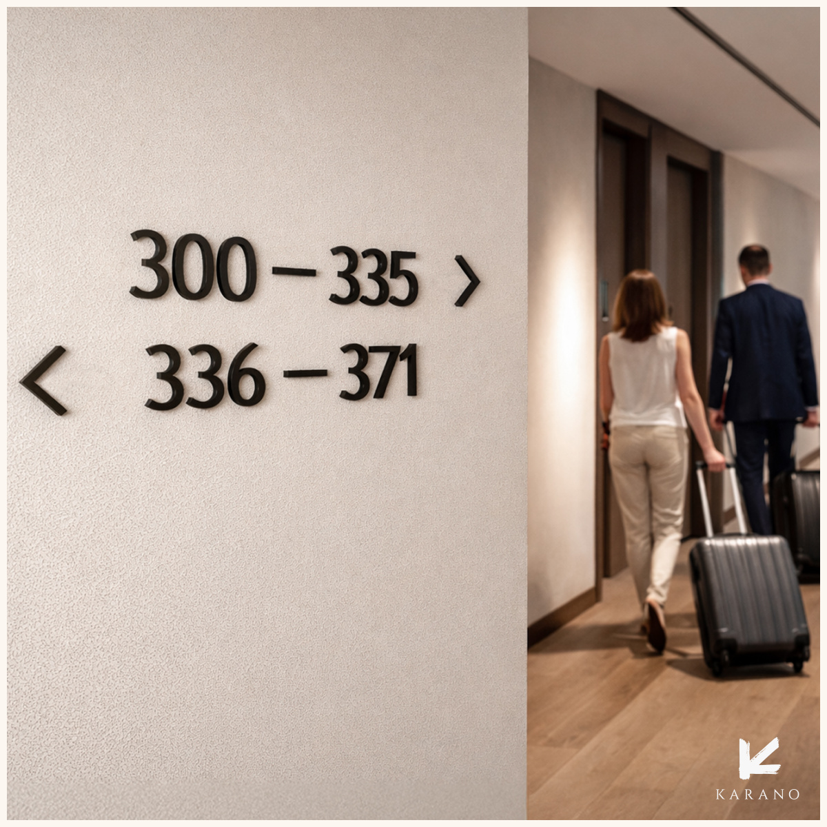 Udskårne sorte tal til hotelvægge, der tydeligt henviser til værelsesnumre. Et stilrent og moderne valg til hotelgange og fællesområder.